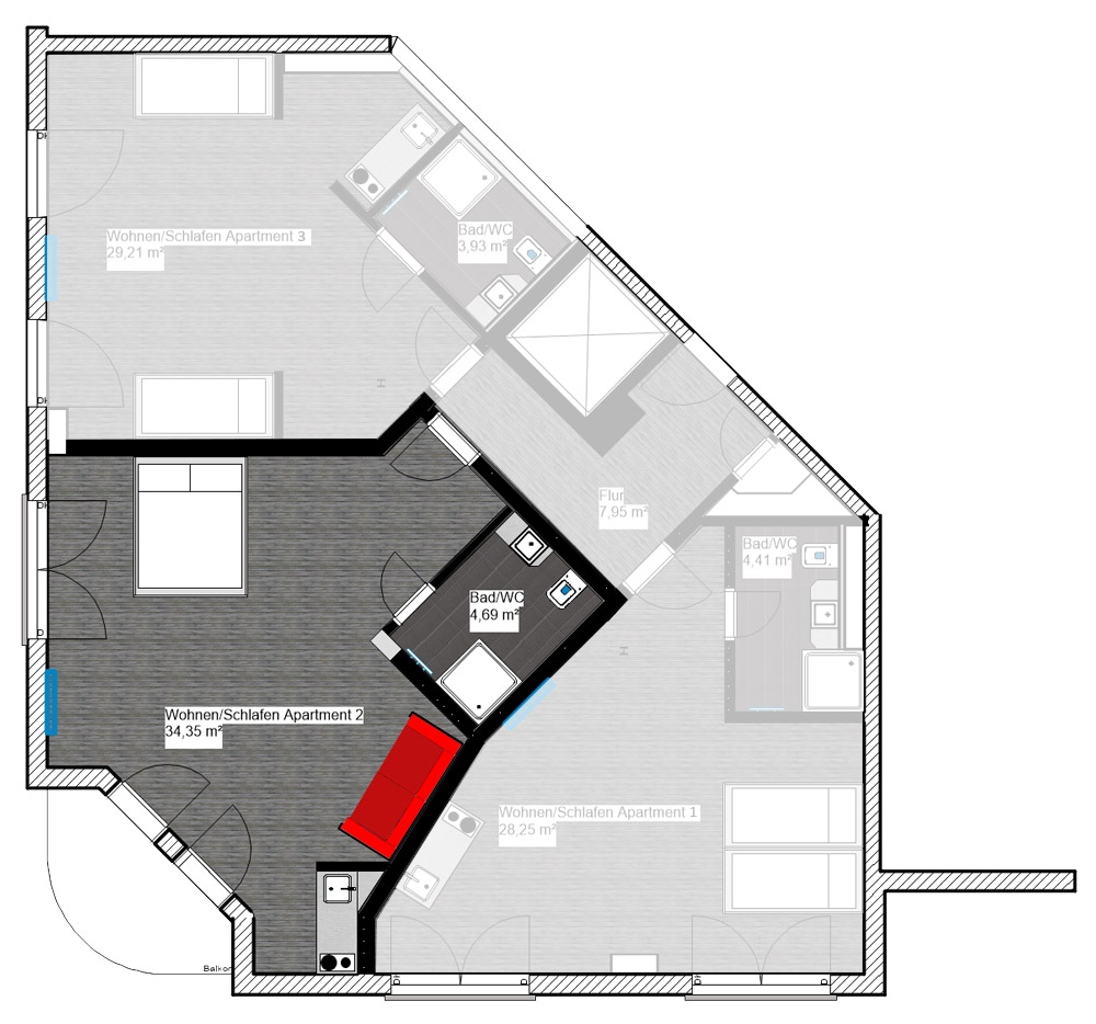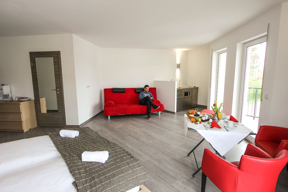 Our cozy apartments are located in the immediate vicinity of the solewerk Hotel. During your stay, our guests have free Wi-Fi, access our wellness and fitness area as well as parking facilities in the underground garage.